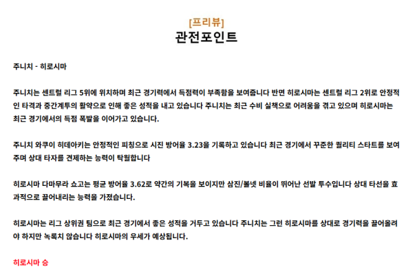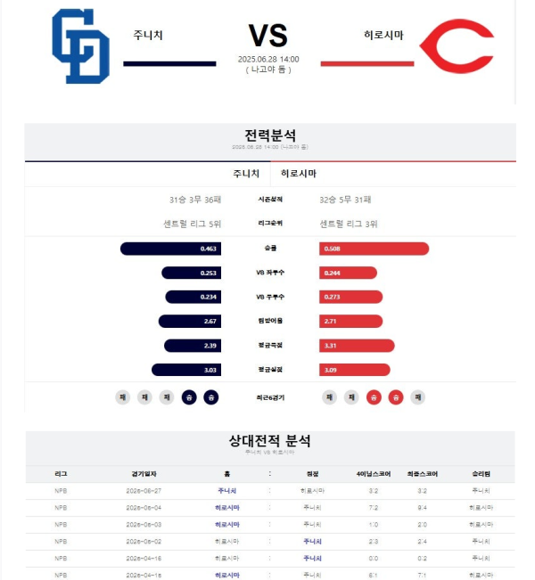주니치 vs 히로시마