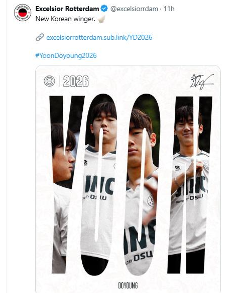 2025-2026시즌 1부 승격팀인 엑셀시오르도 이날 "윤도영 영입으로 다음 시즌 스쿼드를 강화했다"면서 "18세 공격수 윤도영은 잉글랜드 브라이턴에서 임대 영입됐고, 비자 절차가 완료되는 대로 선수단에 합류할 예정"이라고 알렸다.