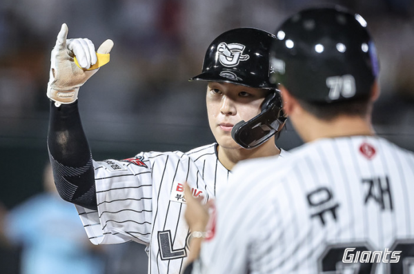 이어 손호영의 2루타와 한태양의 땅볼로 만들어진 2사 2루 상황에서, 박승욱의 내야안타에 2루 주자 손호영이 홈을 밟으며 점수를 3-1로 벌렸다.