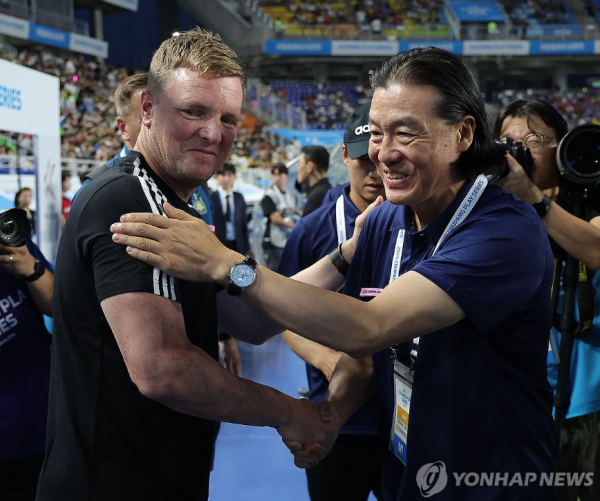 김 감독과 이정효 수석코치(광주FC 감독)가 지휘한 K리그 올스타 격인 '팀 K리그'는 이날 뉴캐슬과의 경기에서 1-0으로 이겼다. 전반 36분 미드필더 김진규(전북)의 선제 결승 골을 잘 지켜냈다.
