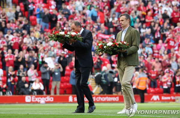 경기 시작에 앞서 리버풀에서 수비수로 활약하고 감독 대행도 지낸 '레전드' 필 톰슨과 빌바오의 욘 우리아르테 단장이 나란히 꽃다발을 들고 페널티박스 앞에 헌화한 뒤 묵념했다.